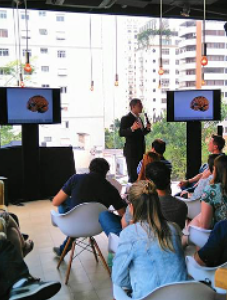 “Aprendi a importância de construir e contar uma história, cativar o público e atuar num palco. Professores incríveis! Hoje me apresento, como palestrante profissional.“